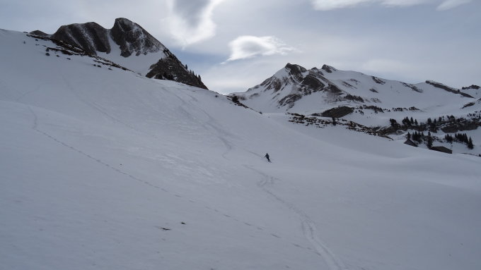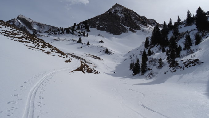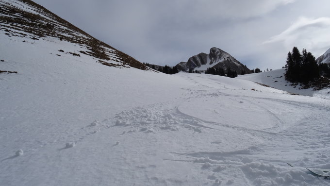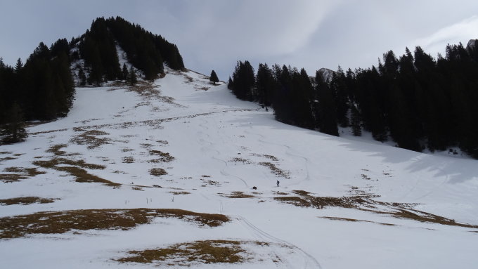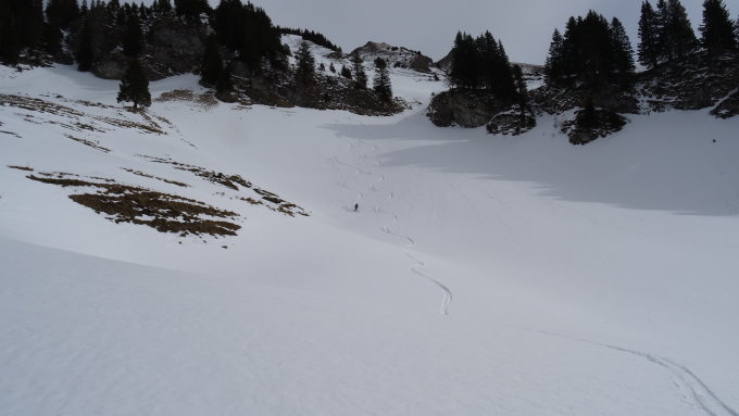 Unterhalb 1500 dann Bremsschnee den man meist der Aufstiegspur nach ohne zu Stäcklen auch noch akzeptabel fahren konnte.