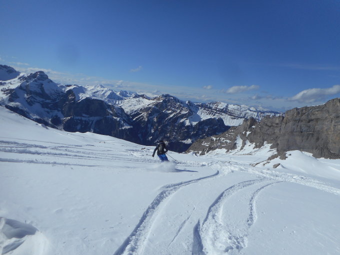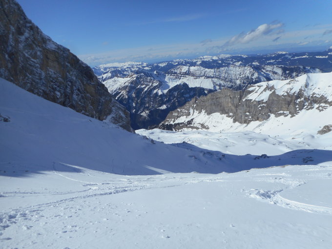 Die Abfahrt nach Norden über Heufrutt zur Stöckalp bot uns traumhaften Pulverschnee. Der Aufstieg ist das Menü. Die Abfahrt das Dessert. Mich interessiert beim Alpinismus vorallem das Crea.