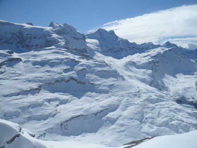 Viel und teils schon etwas schwerer Pulver. Danke fürs Spuren bis unter Raustöckli. Von da an selber gespurt bis uns noch eine Gruppe am Fuss des Vorgipfels Punkt 2438 eingeholt hat. Es waren dann alle zu müde bis auf den Hauptgipfel zu spuren. Somit sind wir alle auf den Vorgipfel Punkt 2438.