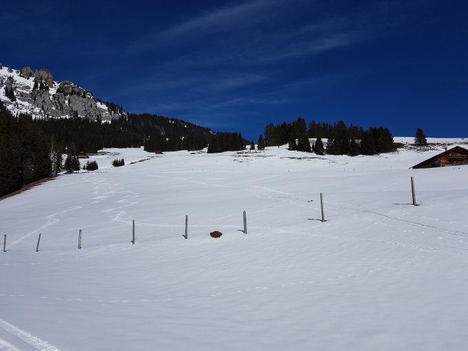 Mit dem Auto konnten wir bis zum Blattweidli fahren. Wir parkierten in der Hegi Kurve und konnten bereits nach 100 Meter durchgehend mit Ski weitergehen. Da wo der schöne Teil der Tour eigentlich erst beginnt.