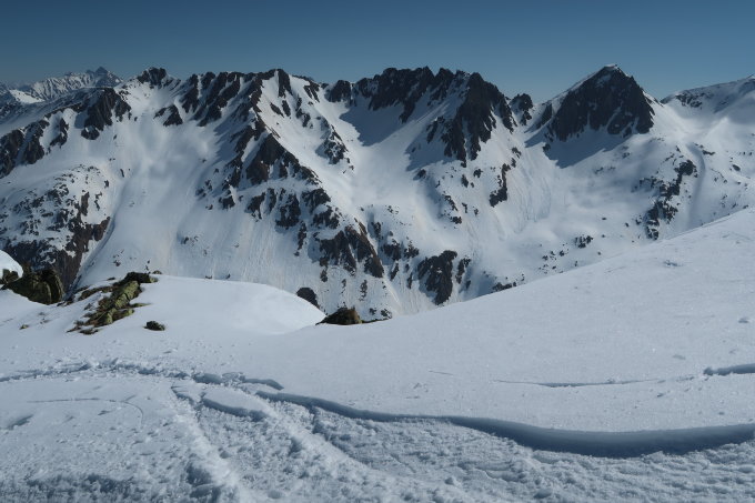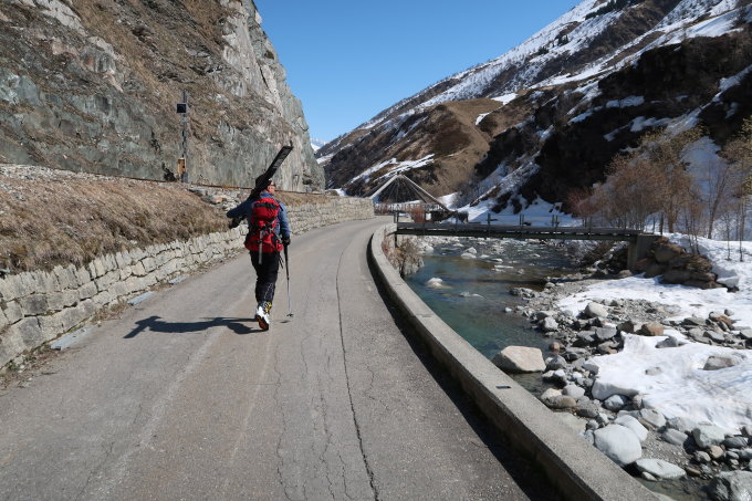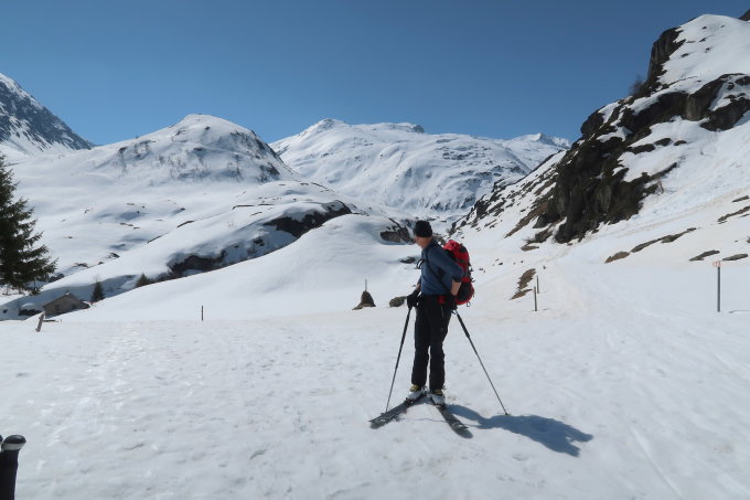 In der Abfahrt im oberen Teil Pulver mit Bruchharsch Passagen, dann ruppiger Sulzschnee bis zum Stelliboden. Wir entschieden uns für den Winterweg und sind durch das Engtal nach Ober Chäseren abgefahren. Auf schönem Sulz über Höhenbiel und Rieder zu den Militärgebäuden hinab von dort in einem kurzen Fussmarsch nach Hinter Schweig hinauf. Auf der Militärstrasse nach Geren und von dort "per pedes" zurück nach Realp.