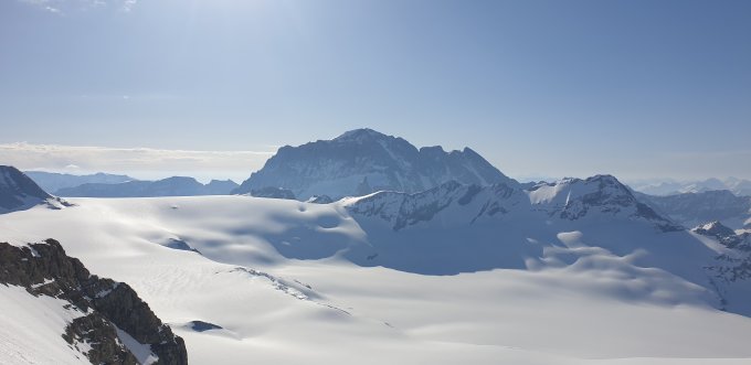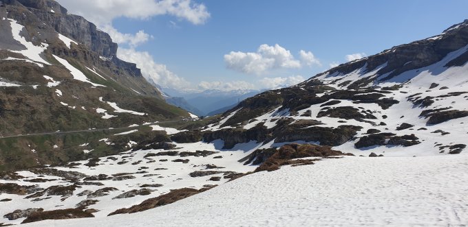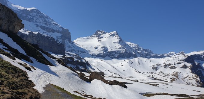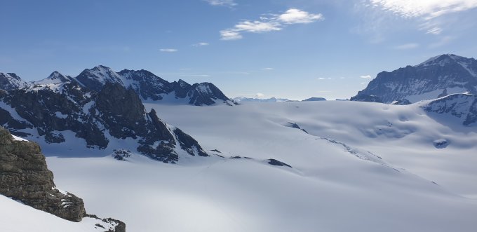 Aufstieg auf der Claridenroute via Chammlijoch, das Wetter am Morgenfrüh noch unsicher, bis Iswändli gute griffige Spur, dann musste ich die Ski kurz tragen, weiter auf Hartemschnee zum Chammlijoch, leichte Nebelschwaden zogen auf, die Abfahrt in Richtung Schärhorn war leicht wellig, der Aufstieg zum Gross Schärhorn dann bei besten Verhältnissen bis zum Skidebot, beim Fussaufstieg zum Gipfel waren gute Trittspurenn vorhanden, die letzten Meter am Grat waren aper mit einer Platte, dort war es auch schon einfacher bei mehr Schneeauflage, die Abfahrt durch die Südflanke war schön Sulzig, bei der Chammlilücke immer noch Hardgefrohrener Firn, an den Schattenstellen hinab nach Chammlialp leider etwas Decklig, dann aber wieder Nassschnee bis zum Klausenpass, es war sehr mühsam von der Chammlialp bis zum Pass, es hat schon viele längere apere Stellen, Abfahrt über Chammlijoch via Iswändli währe sicher Skifahrerisch die besser Wahl.