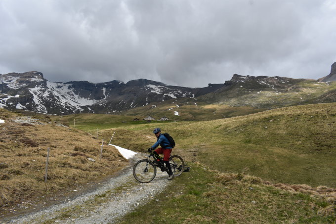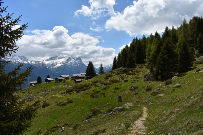 Zum Gipfel schneefrei, auf der Alp Tumprif Richtung Promischur sind noch wenige Schneefelder zu überqueren.