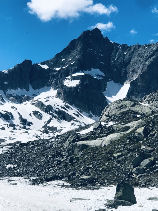Sehr gute Verhältnisse, da kühle Temperaturen. Aufstieg auf hartem Firn mit leichtem Trittschnee, Steilstücke mit Steigeisen bis Einstieg (Depot). Südgrat trocken und wunderbar zu klettern. Abstieg momentan ideal mit noch genügend Trittschnee (sind ohne Steigeisen, Pickel empfehlenswert; Skistock bringt nichts) aber hat schon einige Eisplatten, die bei zunehmender Wärme den Abstieg erschweren werden bis sie ganz weg sind. Abseilpiste schneefrei. Bergschrund noch gut.