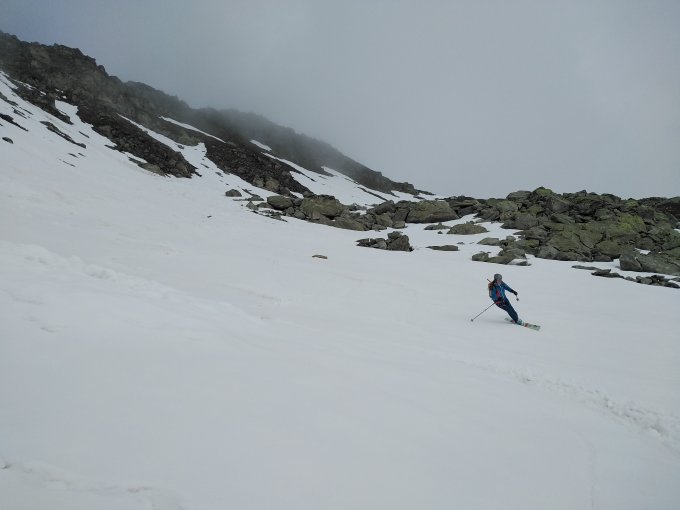 Die Sonne hat aber die Osthänge schnell aufgeweicht so dass es eine tolle Sulzabfahrt gab