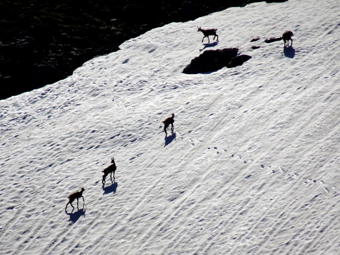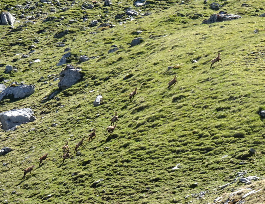 Habe einen Rudel Gämsen gesehen (ca 15 Stk.) Da sie Fluchttiere sind, war das Fotografieren mit der kleinen Kamera ziemlich aussichtslos.