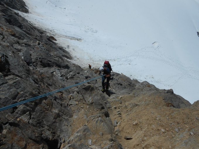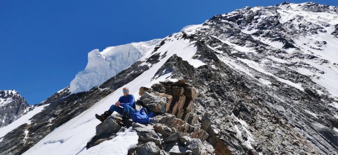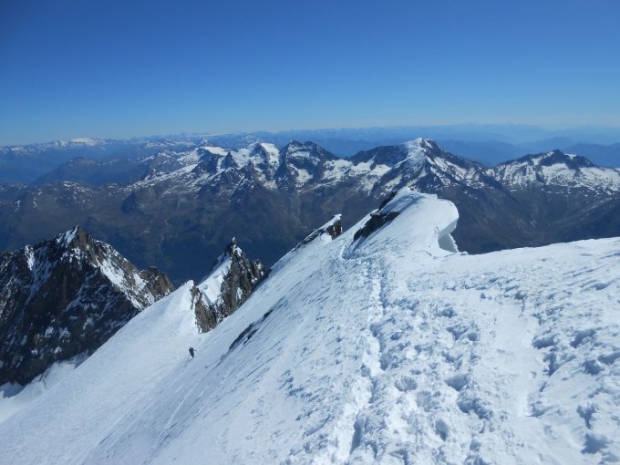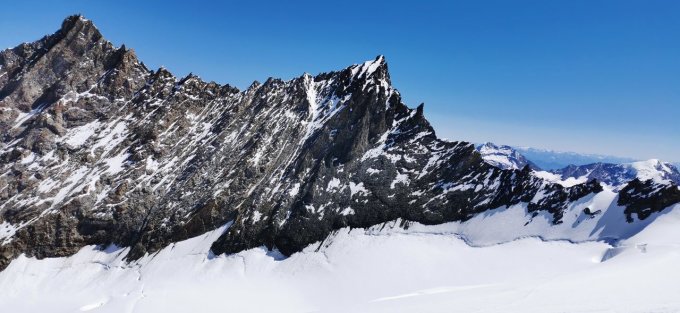 Es hatte bereits blanke Stellen und wir sind, wo es ging, in die Felsen ausgewichen. Weiter oben haben wir mit Eisschrauben gesichert. Am Grat und Gipfel hat es merklich geblasen. Ansonsten war es ein Traum Tag.