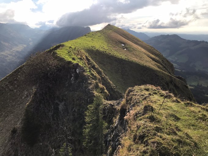 nochmal raus bevor es nächste Woche wieder winterlich und gruusig wird. Wir waren wohl die letzten Bergsteiger auf diesem Gipfel vor dem Schlechtwettereinbruch. Schöne Nachmittag und Abendwanderung mit prächtiger Aussicht auf die teilweise tief verschneiten Gipfel südwärts. Alp Gründli eine gemütliche Bergbeiz, die stark frequentiert ist. Am besten reservieren. Die Beiz in Gfellen am Skilift mit guter Küche und Portionen ist auch sehr zu empfehlen!
