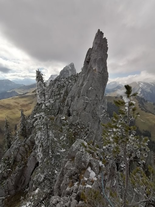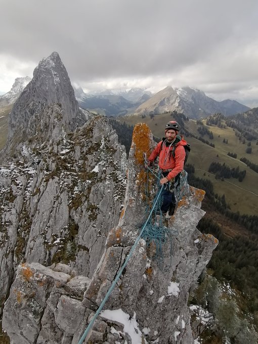 Start um 9:00 entgegen Vorhersage mit ohne Sonne um 9:50 am Oberbergpass.Fels trocken und schneefrei, temperatur Ok, keine kalten Hände, bis Eggturm etwas speckig. Im Abstieg leichte Schneeauflage, haben daher immer wieder Sicherungen gelegt. Daumen (Einstieg bei Tafel), Katze (mit Sonne =)) und Pyramide auch schneefrei. 50m Seil fast etwas Knapp beim Abseilen von der Pyramide, mussten unangenehm ein paar Meter im Schnee absteigen. Im Auf und ab zur Glattwandspitze (Gipfel ca. 16:00) etwas Schnee in den Satteln - hatten Steigeisen dabei aber nicht gebraucht, aber immer wieder Zwischensicherungen in den Abstiegen gelegt. Nach 2 mal Abseilen von der Glattwandspitze den deutlichen Wegspuren und Steinmänchien nach. Weisse Punkte weisen anschliessend den Weg zum Wanderweg zum Chalet Grat dort ca. 17:30. Am Vortag haben wir im Chalet Grat noch sehr gemütlich als einzige Übernachtet. Chalet Grat macht demnächst zu.