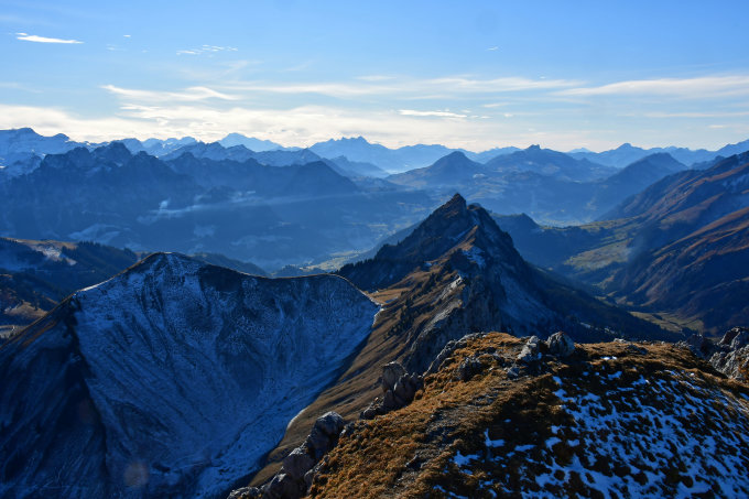 Eine herrliche Tour der schön um den Berg führt und die Kletterei am Couloir ist der eigentliche Höhepunkt. Man kan sich selber die Route aussuchen um mehr zu klettern oder den Spuren folgen wo es einfacher ist. Ein schönes und momentan sehr ruhiges Gebiet. Der Dent de Savigny ist weniger bekannt als der Dent de Ruth, dafür ist sie die höchste Erhebung der Kette.