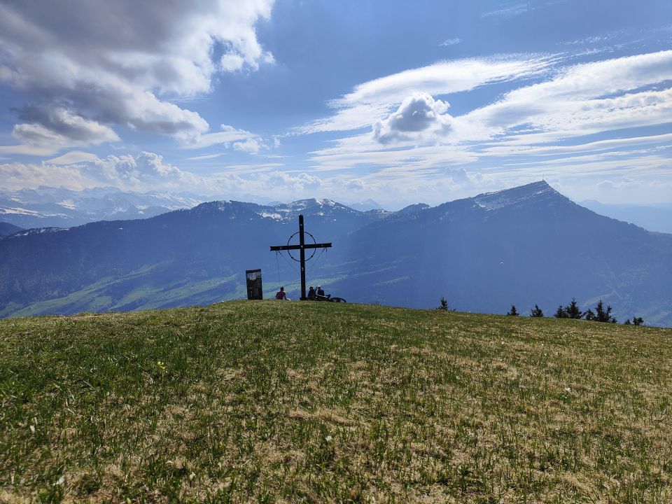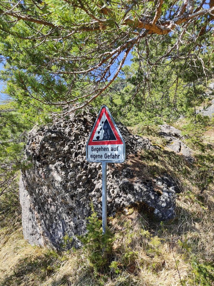 Erkundungstour durch den Goldauer Bergsturz. Für den Zustieg habe ich einen Umweg über Gribsch genommen, damit ich über das Felsenfenster in den Bergsturz einsteigen konnte. Den Einstiegsfelsen erkannte ich sofort. Nach den Felsenfenstern ohne Probleme weglos direkt über den Bergsturz, vorbei an einer roten Markierung, bis zur oberen Begrenzung,. Dort trifft man, wenn man nach links traversiert, auf eine Kette (inkl. Fixseil), die über den letzten Aufschwung hilft. Diese Kombination müsste wohl eine der spannendsten Routen auf den Gnipen als auch den Wildspitz darstellen.