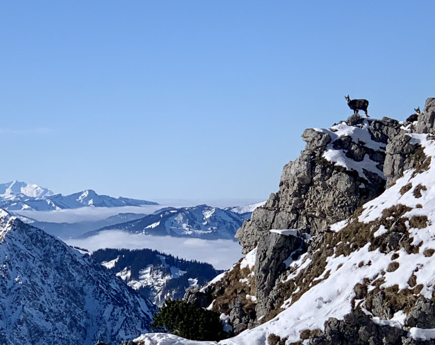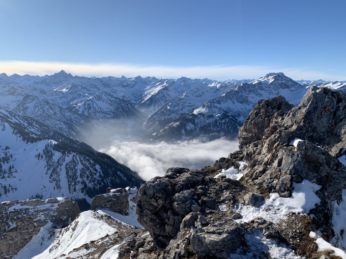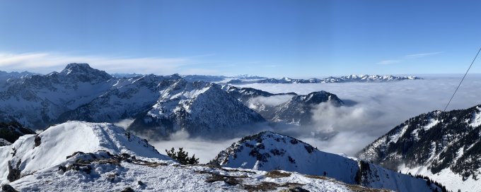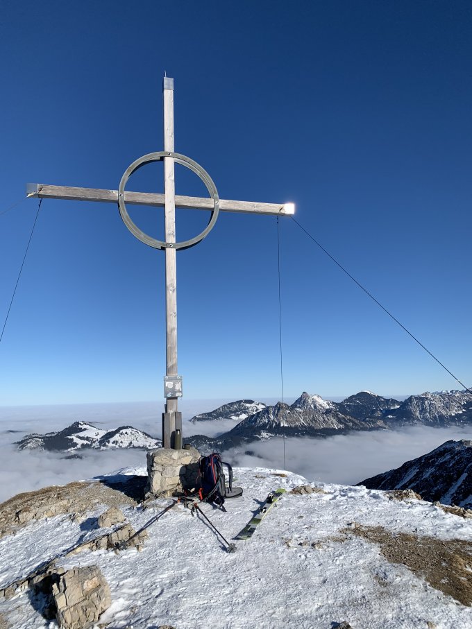 Eigentlich ein wunderbarer Tag - das „schlecht“ bezieht sich nur auf die Schneemenge und die ist absolut gering - ich bin von Hinterstein über die Willersalpe auf den Ponten gegangen, dann über den Grat auf den Bschießer und über die Zipfelalpe wieder runter - das konnte alles (nur) zu Fuß begangen werden, es brauchte noch nicht einmal,Schneeschuhe. Es braucht also Neuschnee ...