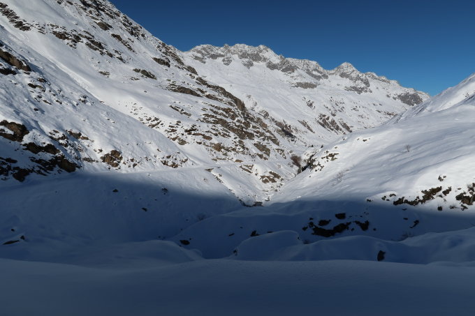 Kalter Start der Tour -18°C. beim Bahnhof in Realp. Die Militärstrasse bis Ebnet war pistenähnlich gestampft. Über Tschäferen zum Stelliboden von dort links haltend in der Direttissima zum Schijenmännli. Am Grat entlang via Schijenboden zum Tälligrat hinauf. Alles auf gut angelegten Spuren Dankeschön an Unbekannt. Herrliches Panorama zu den Skigipfeln im Rotondo Hüttengebiet und Umgebung. In der Abfahrt besonders am Grat entlang noch viel Platz für eigene Linien. Beim Stelliboden durch die stark verfahrene Schlucht nach Ober Chäseren dort den Bach überquert und über Tschäferen nach Ebnet zurück. Der Sommerroute entlang nach Hinter Schweig. (Nicht immer ratsam wegen Lawinengefahr) Weiter nach Vorder Schweig, von der Furkabahnbrücke mit etwas Schwung in die Fläche bei Geren, dann können die Skis bis zum Furka Dampfbahn Geleise auslaufen.