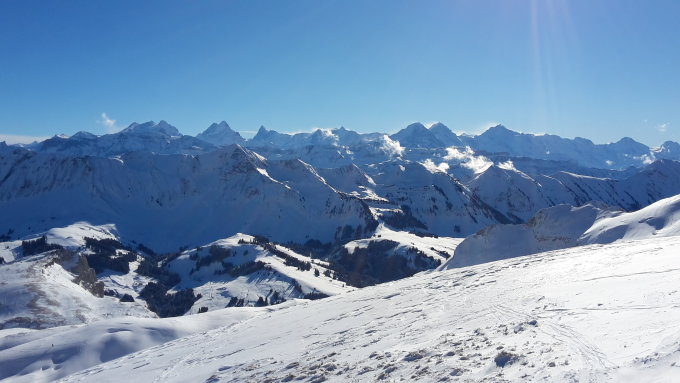 Auf der Ebene unterhalb der Hütte fellte ich nochmal an und ging auf einen schönen kuppierten namenlosen Hööger am Schrattengrat.