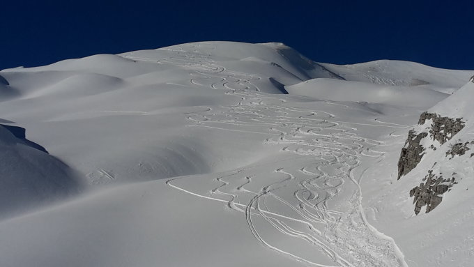 Von da ging es auf Powderabfahrt der allerfeinsten Sorte bis zum Schlund.