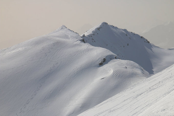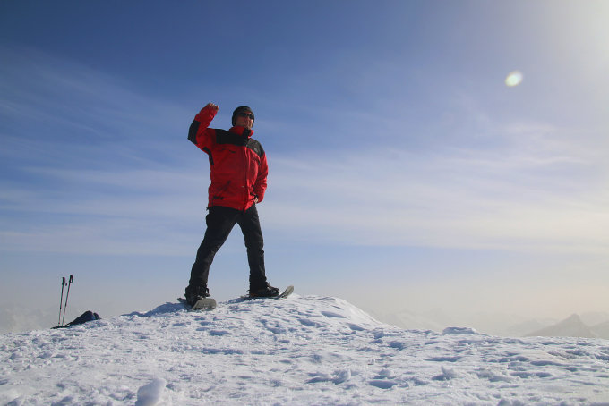 Eigentlich wolte ich das Bärenhorn mit Ski besteigen. Doch letzte Wuche stauchte ich einen Daumen bei einem Sturz wegen schlechter Sicht auf einer Skipiste in der Aletscharena. Dashalb unternahm ich die Tour mit Schneeschuhen wo man nicht einfach so leicht umfällt. Ausser im obersten Teil war es fast frühlingshaft und konnte bequem im Pullover laufen. Nur auf dem Nordostgrat benötigte ich eine Jacke, Handschuhe und Mütze. Die Fernsicht war wegen dem Saharastaub der milden Südströmung stark eingeschränkt was eine ganz besondere Stimmung war. Kurzum, es war eine einfache gelungene Tour. Die nächste Tour werde ich nochmals mit Schneeschuhen machen und wenn mein Daumen wieder topfit ist, so hoffe ich, gibt es einige tolle Skitouren!