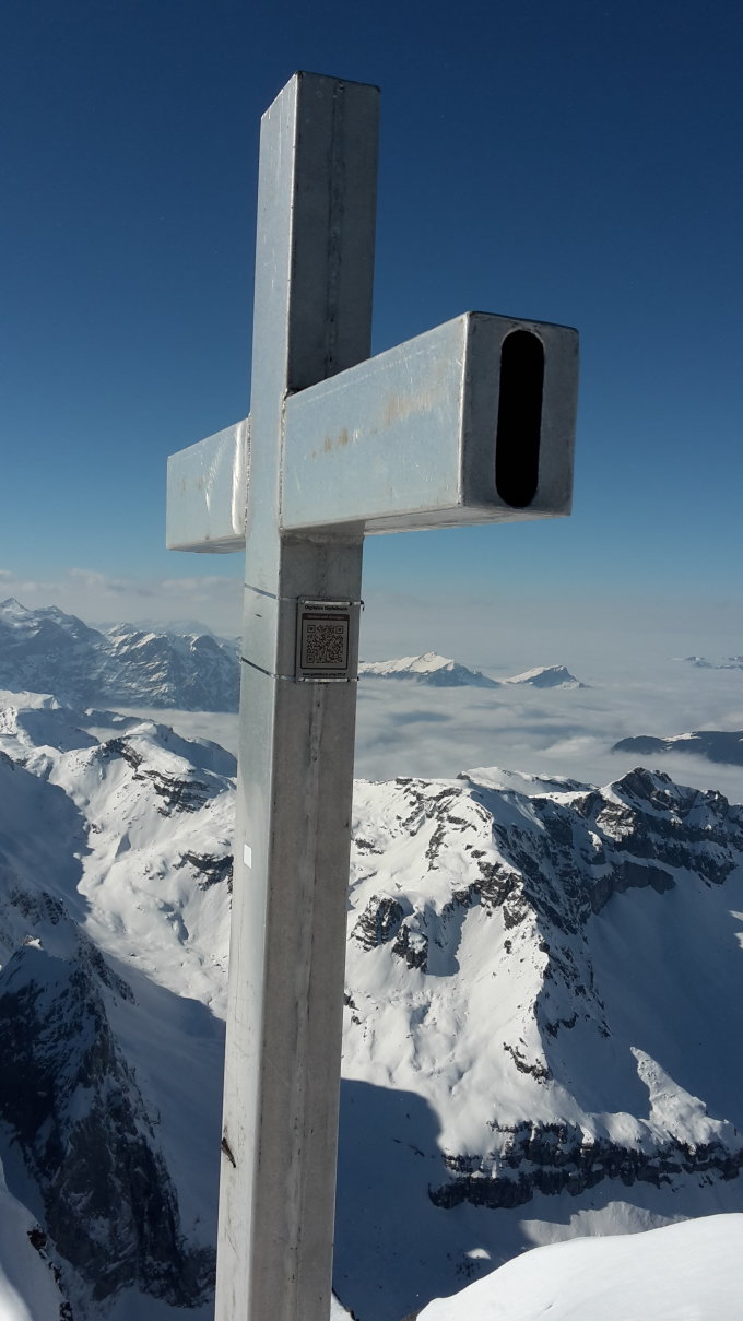 Ich habe heute in Auftrag ein digitales Gipfelbuch(QR-Tag) am Kreuz montiert.
