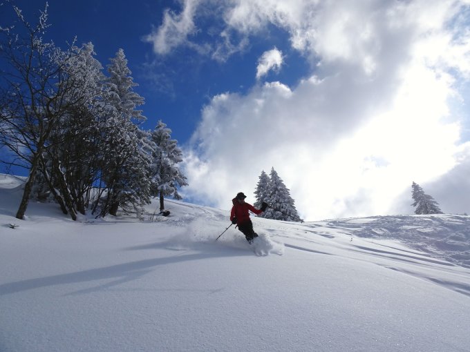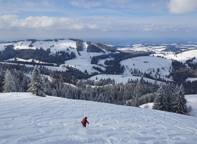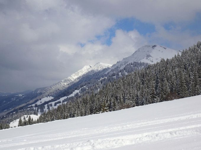 Perfekter Pulver und trotz vorhandener Spuren noch ausreichend Platz für eigene. Einige lohnende Zusatzabfahrten abseits der Hauptroute möglich.