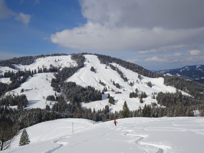 Trotz vollem Parkplatz Betrieb überschaubar, am Hochgrat deutlich mehr los (sah auch noch ganz gut aus, zumindest die unteren Hänge).