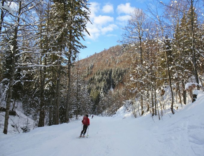 Nach Start am späten Vormittag im Aufstieg noch meist verhangen und etwas Schneefall. Pünktlich am Gipfel um 13.00 h erste Sonnenstrahlen und nachmittags dann immer schöner.