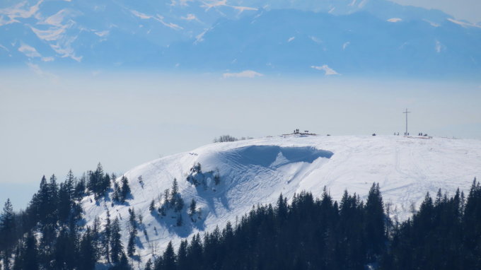 Das tolle Wetter haben doch viele für eine Tour genutzt. War der Parkplatz am Morgen praktisch leer, war er mittags fast voll. Aber auch viele Loipengänger darunter.