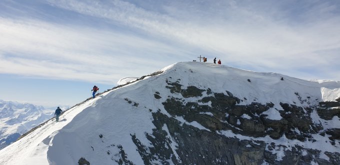 jetzt nach den letzten grossen Schneefällen auch sehr gut Eingeschneit, gleichte heute eher einer steilen Flanke, der Gipfelhang mit Windeinfluss kein Traumpulver mehr, oben war es recht windig.