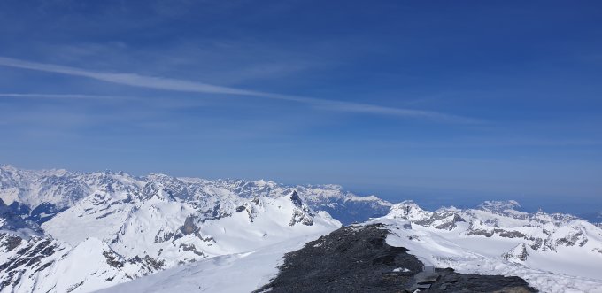 Der Tödi bietet eine sehr gute Aussicht, im Osten ist der Ortler zusehen im Westen der Mont Blanc, heute war es leider nicht so Sichtig.