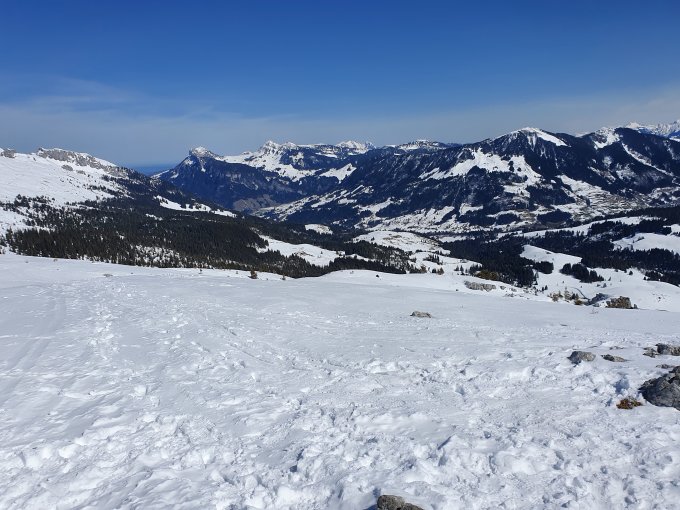 Chlus – Ober Ruchweid – Schlund herrliche Sulzhänge, auf ebenen oder schattigen Stellen noch Pulver bis Nassschnee (je nach Besonnung), nur einzelne Stellen Bremsschnee.