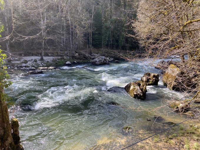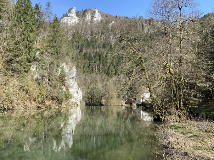 Nun ist auch der Sommetres digital. Die Metallplatte befindet sich auf der Westseite des Gipfelkreuzes. Unterhalb des Gipfels ist die Übernachtung in einer Selbstversorgerhütte möglich (Unkostenbeitrag etwa CHF 10.-). Der landschaftlich reizvollste Teil ist zweifellos der Abschnitt Muriaux - Sommetres - Chez le Bole - Le Theusseret (ein vorzügliches Forellenrestaurant) - Goumois. Der Aufstieg zurück nach Muriaux durch den Wald hat landschaftlich weniger zu bieten und eher sportlichen Charakter. Eine Verlängerung der Tour von und nach Saignelegier ist möglich, jedoch landschaftlich reizlos. Allerdings dort ein grosser Parkplatz am Marche de Concours. Wir haben in Muriaux Corona-bedingt noch einen Parkplatz am geschlossenen Hotel Chambre d'Hotes ergattert. Ansonsten lohnt die Anfahrt mit der Bahn bis zum Haltepunkt von Muriaux, da es im Dorf faktisch keine Parkmöglichkeiten gibt. Restaurant Le Theusseret (Guide Bleu La Suisse Gourmande) bis auf weiteres leider geschlossen. In Goumois (seit 1870 in Frankreich und Schweiz geteilt) gegenüber vom Schweizer Zoll Take-away in einem Gasthaus möglich.