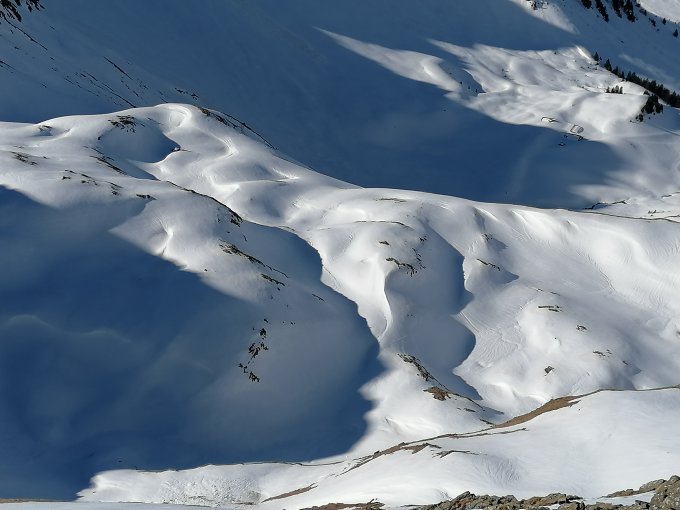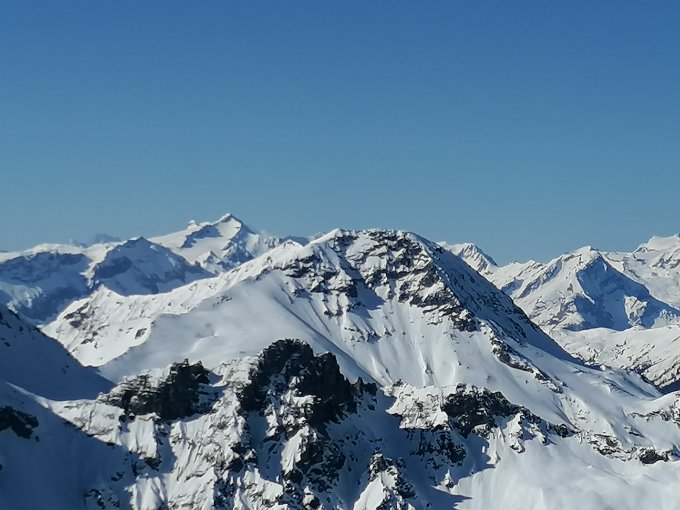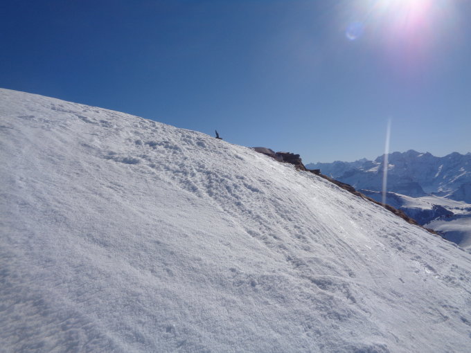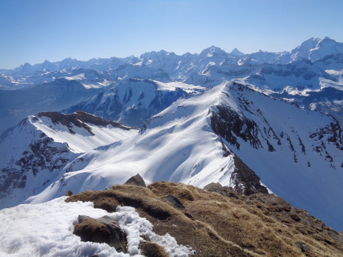 Ein prächtiger Frühlingstag zum Skitouren gehen. Windstill, mild und eine ausgezeichnete Fernsicht bis zum Mont Blanc. Besser kanns nicht mehr sein.