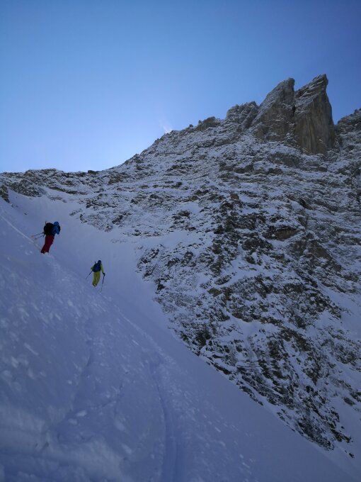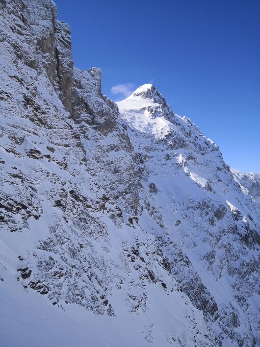 Besser gehts nicht mehr, um 07.15 bei der Brücke gestartet bei - 2°C, angenehm, zuerst ohne Ski bis kurz vor Sittlisalpbahn.Nach knapp 1.25h Einstieg gut aufgewärmt in die Ruchchälen abgebogen. Eine sehr gute Spur war vorhanden in schönem Pulver. Vielen Dank dem Spurer. Zu Beginn bereits Wind gegen oben hin immer stärker, recht kalt in der dunklen Chälen. Nach knapp 3.25h am Pass, ging sehr gut. Danach nur noch Willenssache bis, Skidepot. Steigeisen, Pickel für Aufstieg zu empfehlen, ginge heute auch ohne. Nach 5.5h am Gipfel, leider Wolken welche den Tiiiiefblick verdeckten. Abfahrt dann in ca. 30min bis Brunnialp, perfekter Powder, zum Teil knietief bis ca. Mitte der Chälen. Anschl. Laaaanges Auslaufen der Strasse entlang, 2-3x müssen Ski kurz abgezogen werden.
