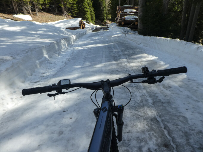 Diese Skitour macht nur noch als Kombitour (E)-MTB/Ski Sinn. Von Mathon (1547 m) mit Bike bis kurz vor Mursenas (ca. 1900 m), dann nahtlos weiter auf Ski bis auf den Piz Beverin. Prima Verhältnisse, kein Mensch weit und breit. Abfahrt nach 9 Uhr ideal, ganz oben hatte es noch etwas frisch gefallenen Pulverschnee, weiter unten ab Variantenabfahrt (vom Leiterfuss Richtung Osten) dann leckeren Buttersulz. Alpstrasse ab Mathon ist im oberen Teil noch z. T. schneebedeckt und mit PW noch nicht zu befahren (Absperrkette am oberen Dorfausgang).