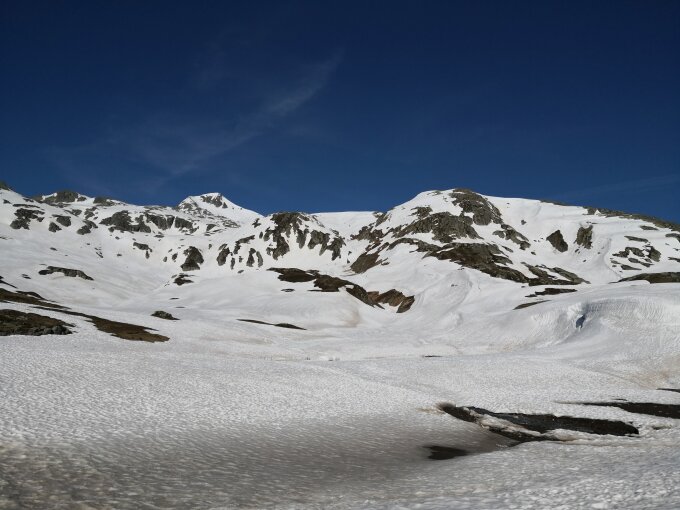 Schnee hats noch genug, auf meiner Route linksseitig um das Sidelhorn wirds aber bald einige Tragepassagen geben.