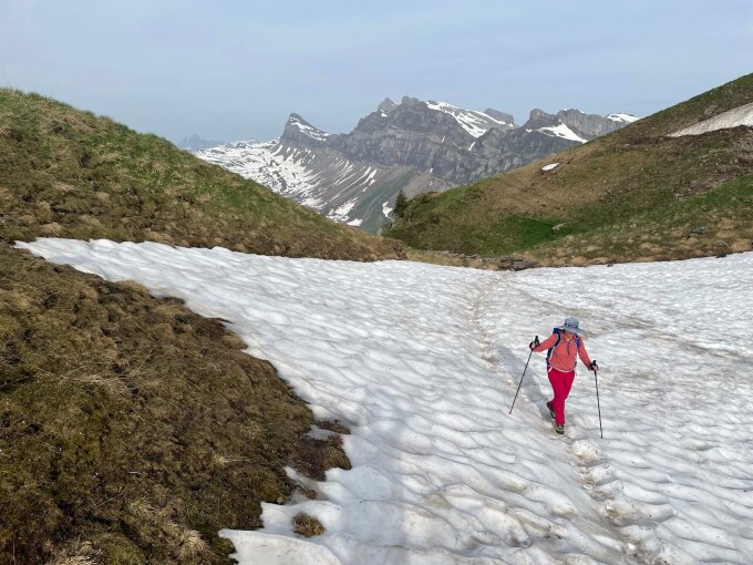 Rundherum hat es noch sehr viele Schneefelder.
