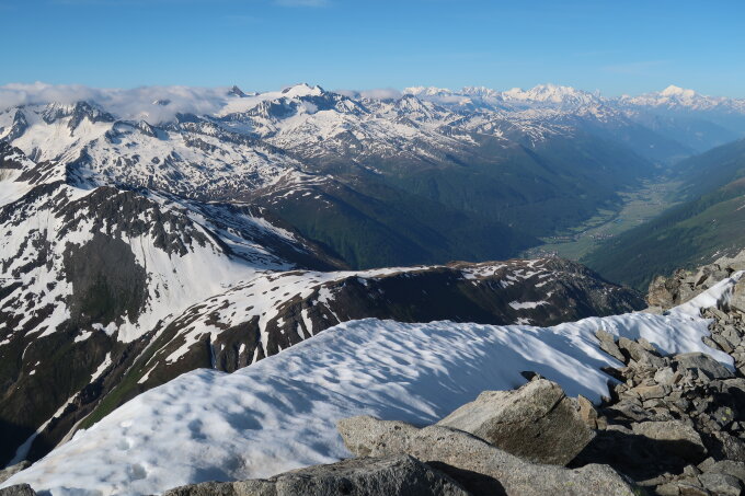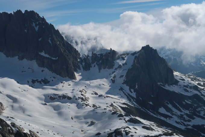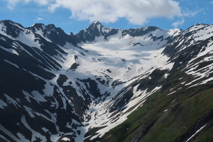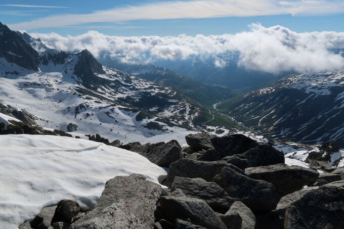 Muttenhorn, Galenstock, Dammastock etc. wurden auch bestiegen. Das Trassee unter dem Blauberg und Griegufergrat entlang zum Muttgletscher ist fast durchgehend aper.