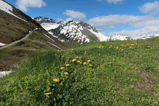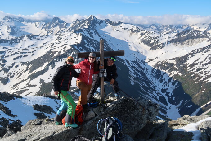 Start der Tour um 06.00 Uhr beim Hotel Furkablick. Skis konnten beim Refugium auf der Passhöhe angeschnallt werden. Auf Schneebändern mit tiefen "Regenkacheln" zur Anhöhe vor dem steilen Südhang hinauf. An der Sonne zum Furkagrat konnte der Schnee schon früh "aufsulzen" angenehm zu laufen. Auf der Nordseite des Grats, bis zum Skidepot auf gefrorener aber griffiger Schneedecke. Per Pedes über Blockgelände zum Klein Furkahorn mit den Skischuhen nicht unbedingt das gelbe vom Ei. Am Gipfel lagerte bereits ein fröhliches Tourengeher Trio. Fantastisches Panorama in alle Himmelsrichtungen. In der Abfahrt konnte der "Büsserschnee" zwischenzeitlich aufweichen und war noch so "lala" fahrbar. Die Skitouren Saison neigt sich für mich dem Ende zu.