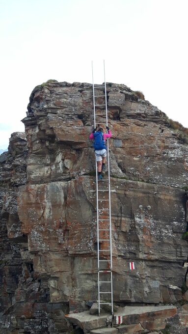 Spannender Aufstieg blau weiss, zeitweise exponiert und abschüssig. Trittsicher, schwindelfrei und konzentriertes Bergwandern. Abstieg über Leiter Route nach Mathon, ca 7 std mit kurzen Pausen