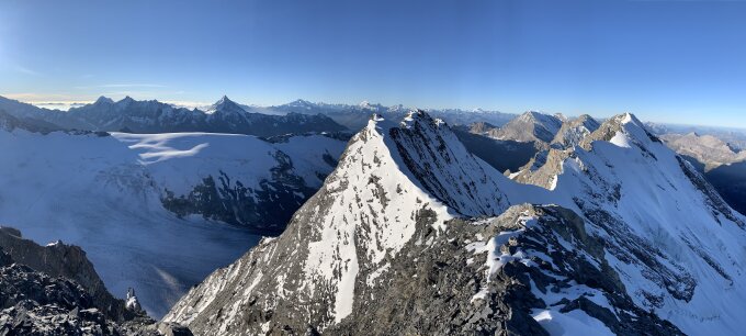 Ursprünglich war die Nordwand angedacht, wovon man uns aber abriet. Mit Blick auf die Wand (siehe auch Bild) konnten wir das im Nachhinein auch so bestätigen. Blankeis, dazwischen Lockerschnee. So wurde es nach 2008 und 2014 meine nun dritte Überschreitung „der schönsten Bergkette der Schweiz“. Sicher auch eine meiner schönsten Gratüberschreitungen, die auch zum wiederholten Male irgendwie magisch bleibt!