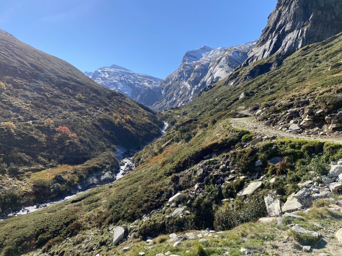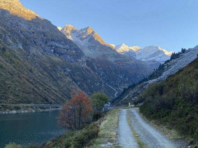 wunderschöne, ab Umschlagplatz Lampertsch-Alp auf der Ochsastafel, einsame Tour. Lampertsch-Alp nicht mehr bewartet. Die Läntahütte noch bis 24. Oktober. Gesamttour: 36 km, 1200 Hm.