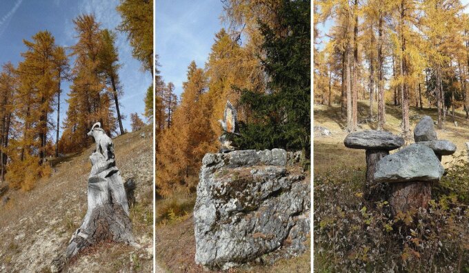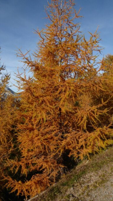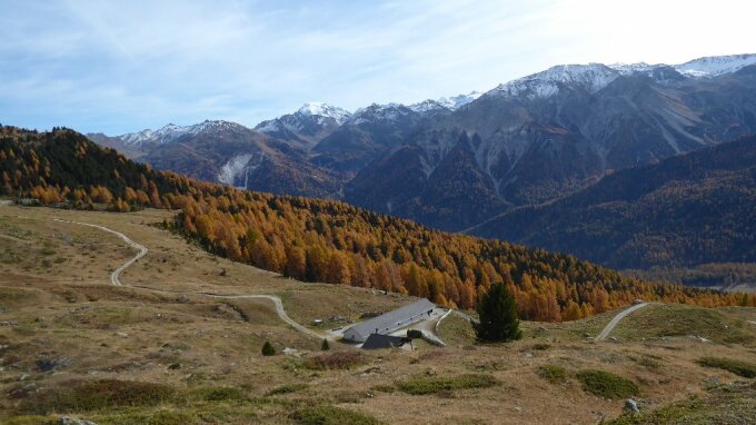 Nach wie vor Bilderbuch Farbspektakel im Lärchenwald. Der Terza bietet auch eine gute 360° Rundsicht mit Sicht auf viele "Alte Bekannte" in Nah und Fern. Obwohl vermutlich als Skitour bekannter, hat sich diese Herbstour gelohnt.
