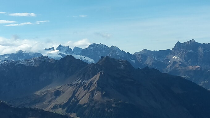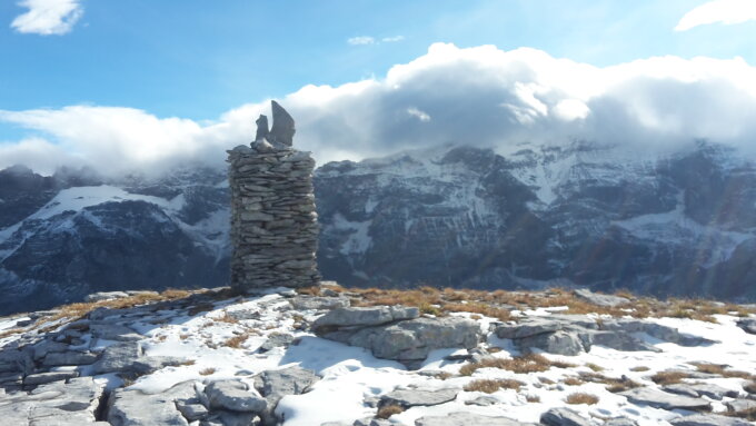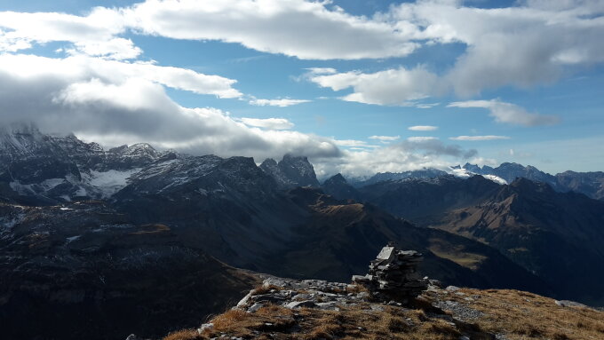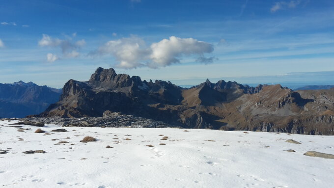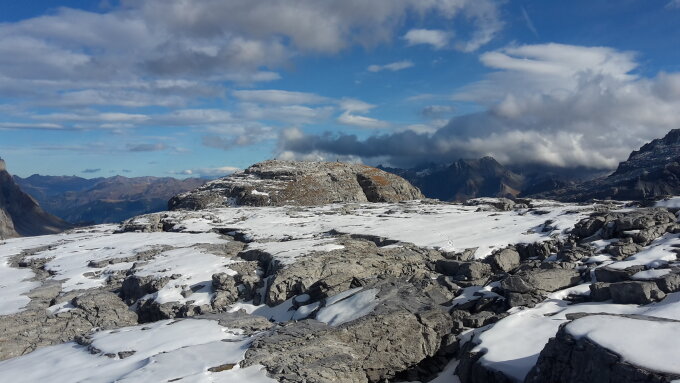 Aufs Märchstöckli wählte ich die Route', im Aufstiegssinne links durch die Schrofen,Wand und Kamin zum Gipfel. Alles staubtrocken. Auf dem Glatten einige dünne Schneefelder, welche gut zu be-oder umgehen sind.