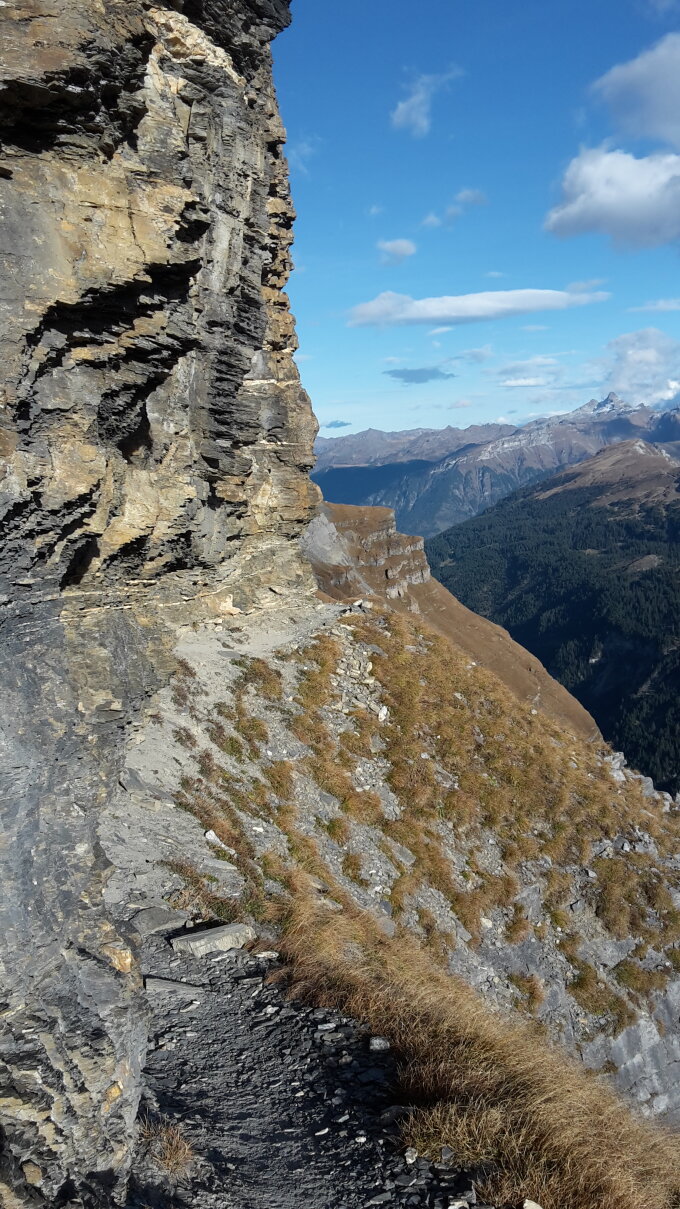 Ich habe noch den Läckistock angehängt. Da ist etwas mehr Aufmerksamkeit beim queren der Schratten gefragt. Ansonsten aber auch tiptop. Herrliche Fönstimmung heute. Sonne pur. Nur der Sturm hat einen zuweilen fast aus den Socken gehauen.