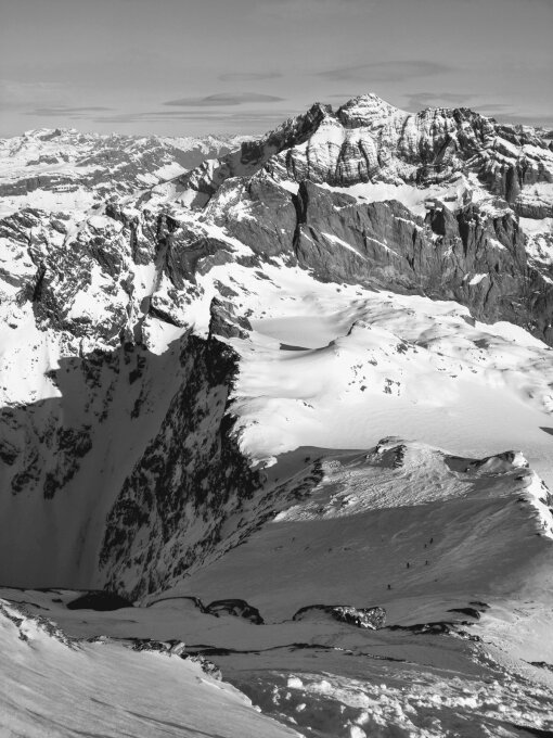 Grossartige und wilde Skitour hoch über dem Brunnital. Der Aufstieg erfolgte von Unterschächen durchs Brunnital, Ruchenchäle und den Ruchenfirn auf den Gipfel. Am Schluss über den schönen Ostgrat auf den Gipfel. Wo man von einem Gipfelmeer ohne Ende begrüsst wird.
