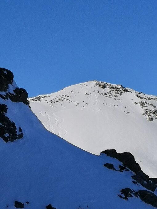 Später Start heute, wegen dem Wetter... Zu Beginn Nebel, teilw. null Sicht, kurz unterhalb der Rotondo Hütte riss die Nebeldecke auf. Tausend Dank den 2 Spurern, ich hätte nie zur Hütte rauf gefunden. Ab der Hütte durfte ich dann Spuren, Top Powder, ca. 20cm.kurz unterhalb vom Leckipass alles leergefegt. Pickelhart, grosse Zastrugis, bei ca. 2800m auf Steigeisen gewechselt. Ab Skidepot starker Wind, Gipfel Flanke leergefegt, Steinwüste. Abfahrt ein Traum.