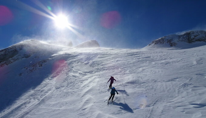 Heute ging ein strenger und kalter Südwind, der uns auf dem gesamten Aufstieg begleitete und auch plagte. Zudem war die Lawinensituation heute eine echte Herausforderung!