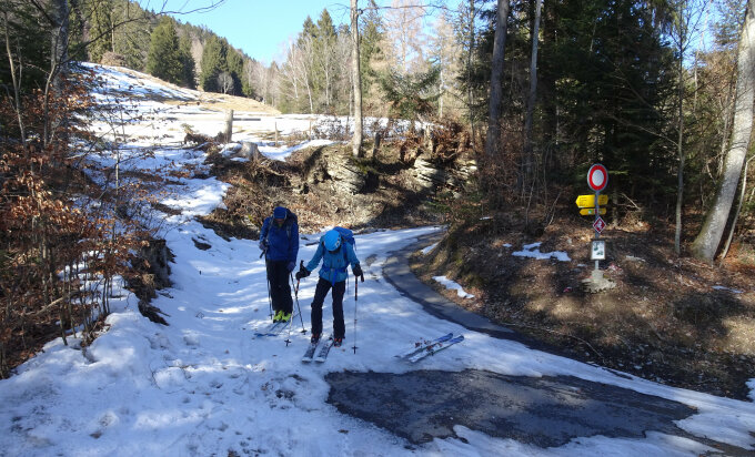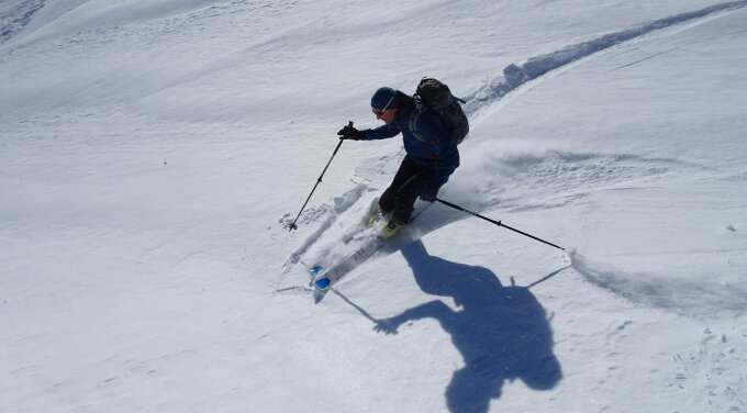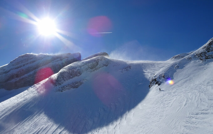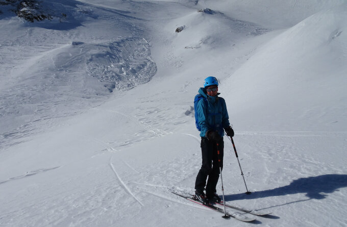 Wenn wir auch nur in die Nähe eines Steilhangs gekommen sind, waren sofort Risse in der Schneedecke vorhanden.