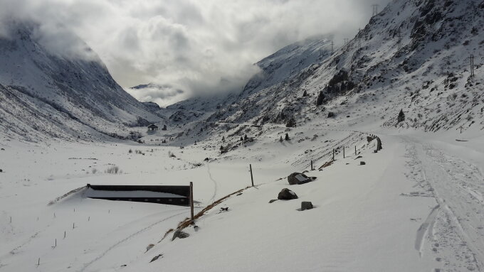 In der Abfahrt hatte ich das Glück dann auf meiner Seite, die Wolken verzogen sich und es wurde schlagartig sonnig. Prima, wenns grad so passt, dann soll es doch auch die schöne und steile Ostabfahrt Richtung Kurvenbeiz(Gotthardstrasse) sein.