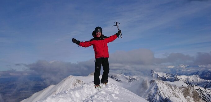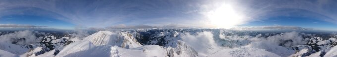 Gipfelbestigung gut gespurt (hatte Steigeisen und Pickel).