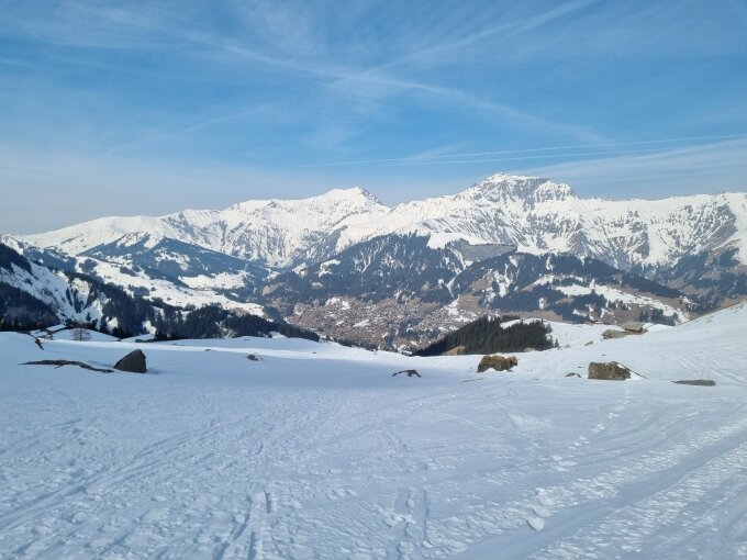 Schnee ziemlich hart, auch bei der Abfahrt um ca. 12 Uhr. Unten einige Trage-Passagen. Mit zeitweiligem Wind eher kühler als erwartet.