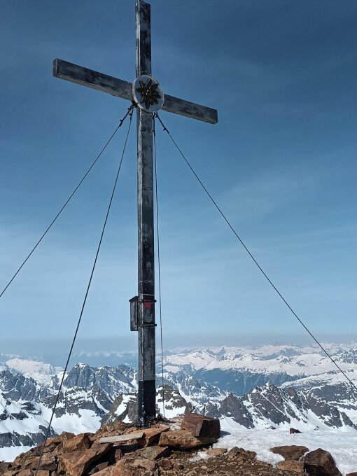 Sonnig aber kalter Wind am Gipfel.
